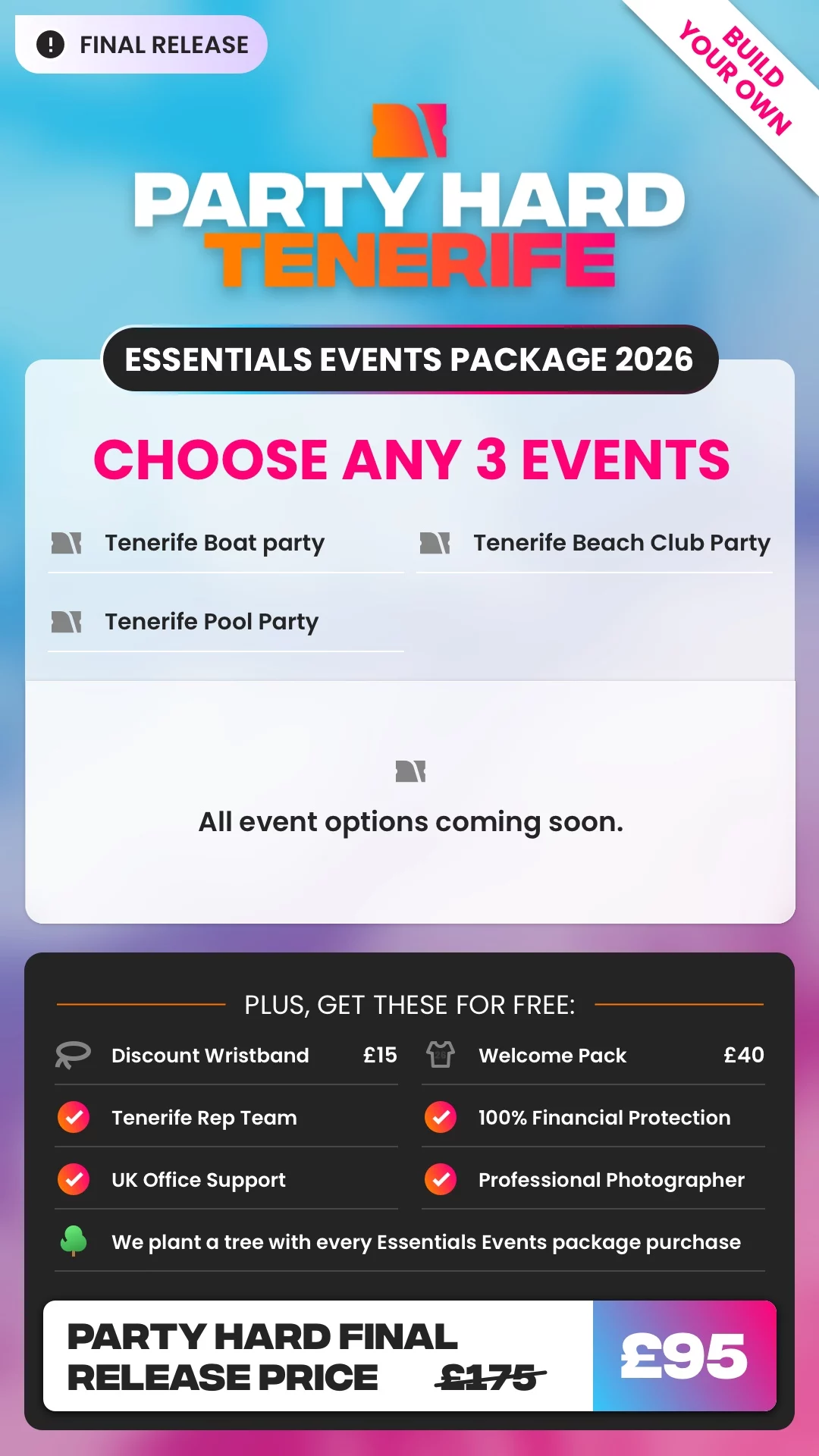 Save over 50% on your events when you book our Ultimate Events Package. We have announced the Tenerife Boat Party, Pool Party and Beach Club Party for Summer 2026, with more still to come! It really is a no brainer to save yourself both time and money and have more time for some fun in the sun.
